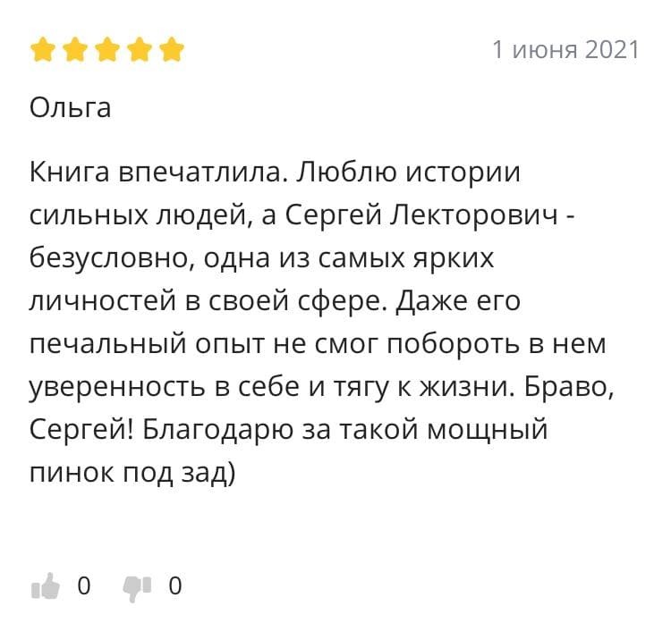 Больше всего в этой книге мне понравилась отвага Сергея и стремление быть номером 1 в любом деле, за которое он берётся. Этим качествам точно нужно учится любому менеджеру и предпринимателю в нашей стране, чтобы мы научились создавать конкурентоспособные бизнесы не только в России, но и во всем мире. А значит, и эту книгу должен прочитать каждый, кто претендует на роль настоящего созидателя.