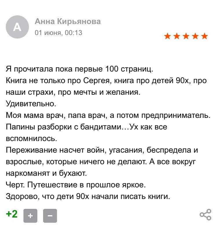 Спасибо за неё, Сергей! Желаю Вам накопить ещё столько же жизней для следующего бестселлера!